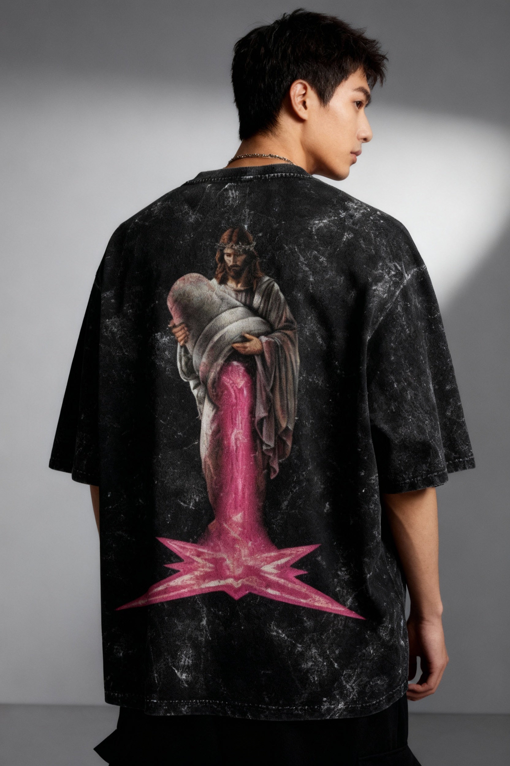 The Thryze Jejus Tee Redefines Street Spirituality. With Its Acid-Washed Finish And Vintage Edge, This Piece Carries A Raw, Unfiltered Look That Commands Attention. Imperfectly Perfect — Just Like The Streets
