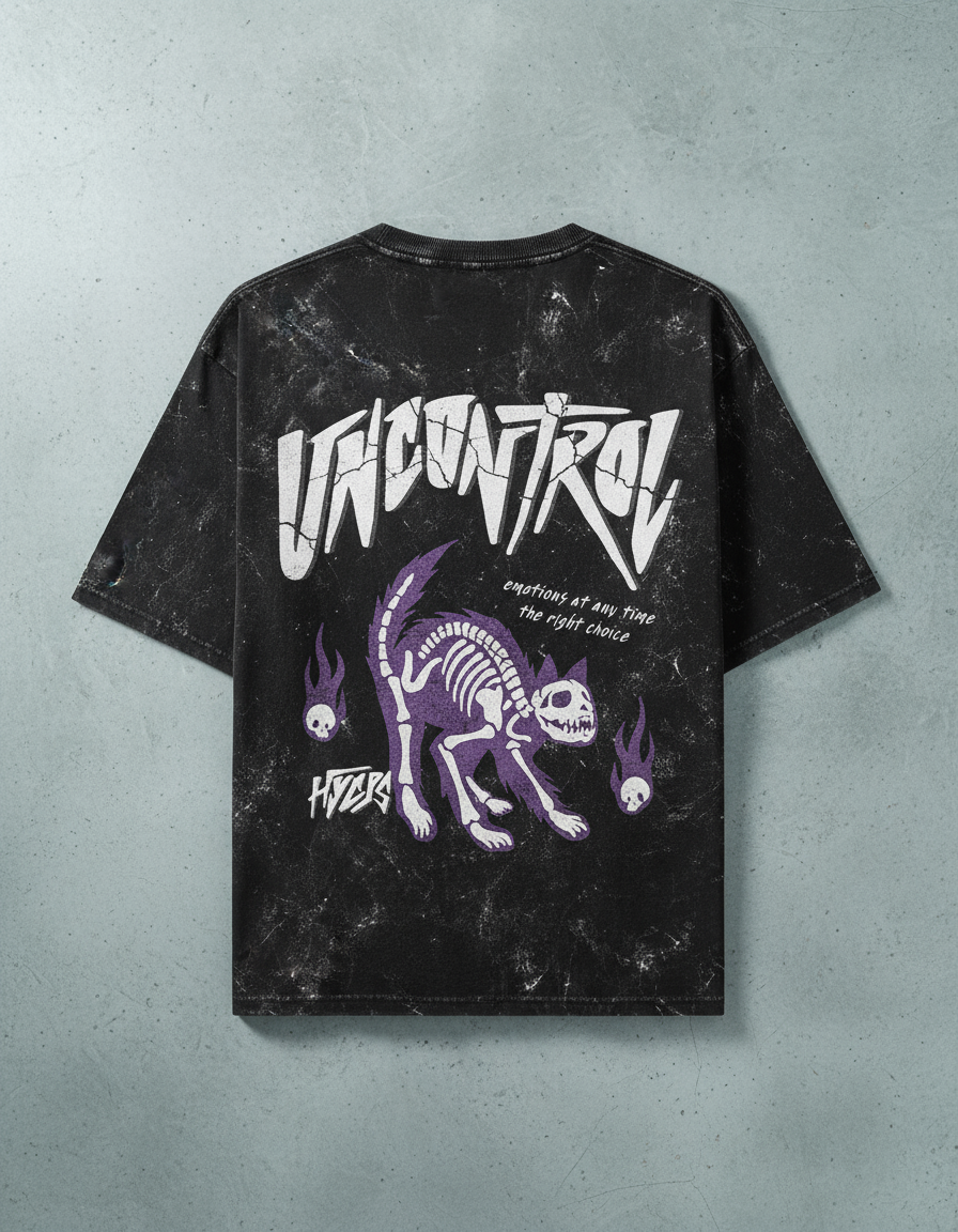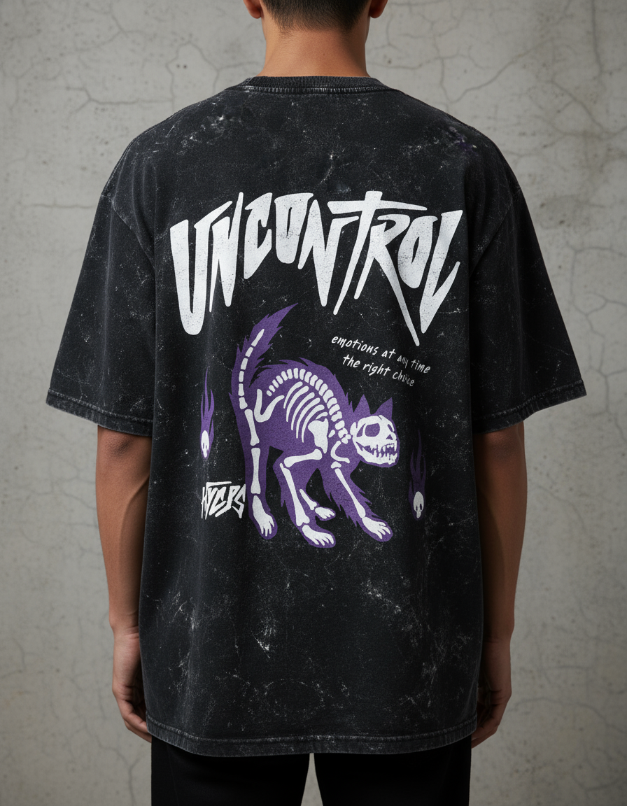 Crafted from 100% heavyweight cotton, this tee balances toughness with breathable comfort. The acid-wash finish gives every piece a unique, vintage character—making it one-of-a-kind. With a clean front for a versatile look and the bold “Uncontrol” design across the back, this tee isn’t just clothing—it’s an attitude